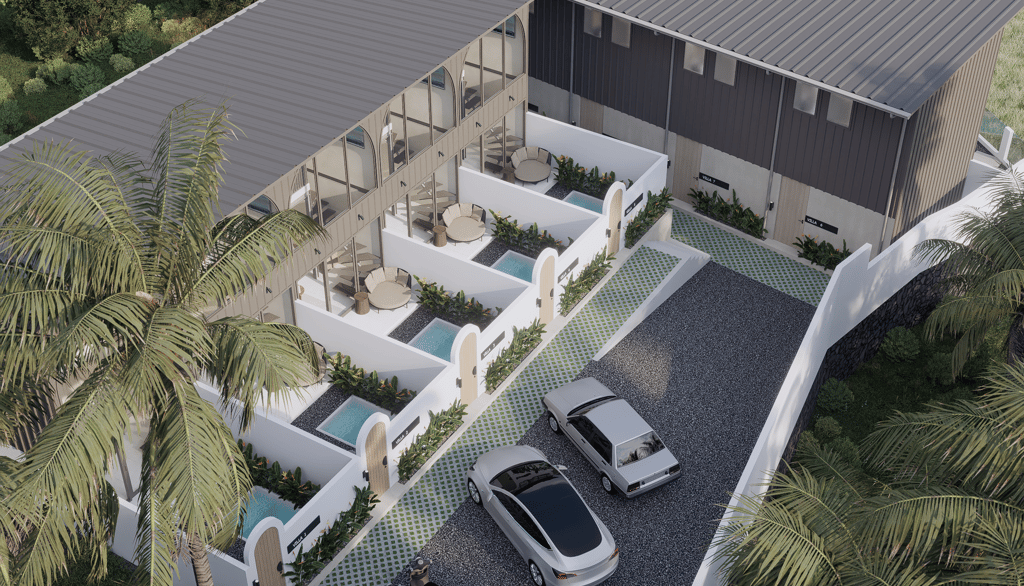 The Canggu Residence harmonizes sleek, minimalist architecture with the cozy comfort of a true sanctuary. Offering a fresh perspective on modern tropical living, this development creates a striking silhouette against the sky while providing the best offer to live in Canggu. It is the perfect balance of industrial chic and genuine home warmth.