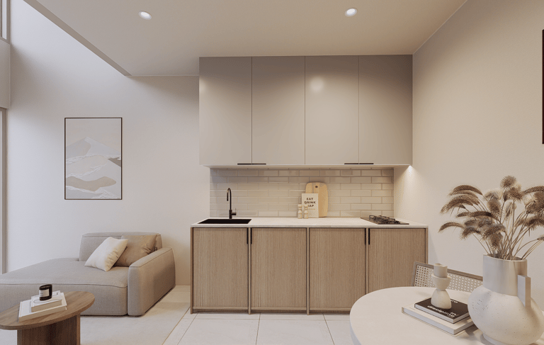 Inside, the design speaks a quiet language of comfort. Natural light floods the open-plan living area, highlighting textures that feel organic and grounded. Every corner is purposefully curated to maximize space, creating a seamless flow from the cozy indoors to your sun-drenched private oasis.